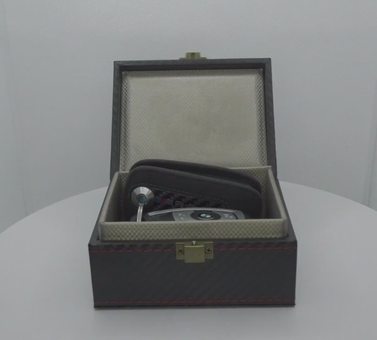 Simply place your keys in the box and close the lid. Want to test it? Try standing near your car with the key inside the closed box. If the doors don’t unlock or engine won’t start—it's working.