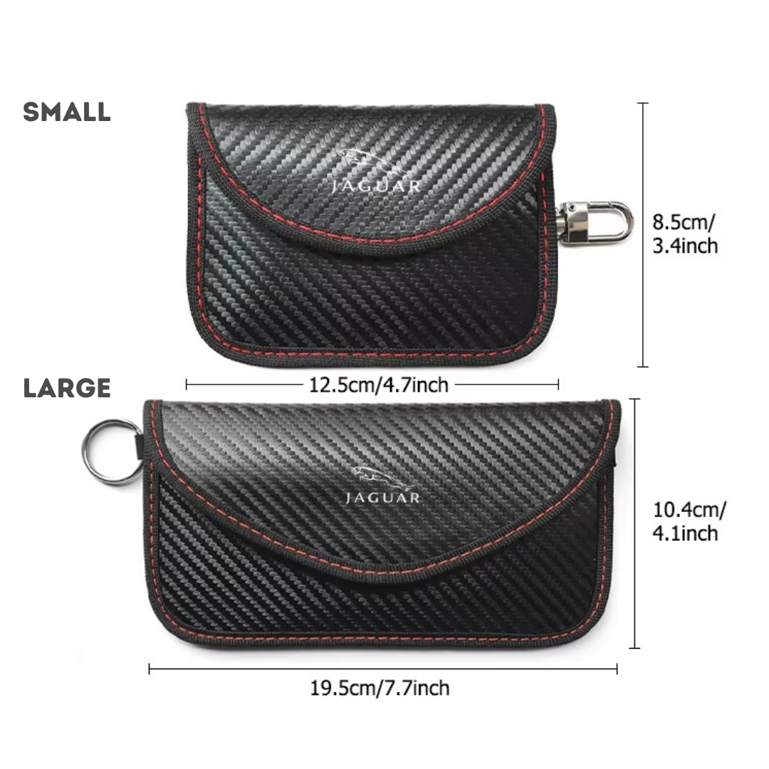 💼 Available In Two Sizes To Best Suit Your Needs: Our Jaguar Faraday Pouch combines luxury and security. It's available in 2 sizes to suit your needs. Our small size (12.5cmx8.5cm/4.7"x3.4") is compact and perfect for key fobs, where as our large size (19.5cmx10.4cm/7.7"x4.1") is great for carrying a key fob, phone and cards.
